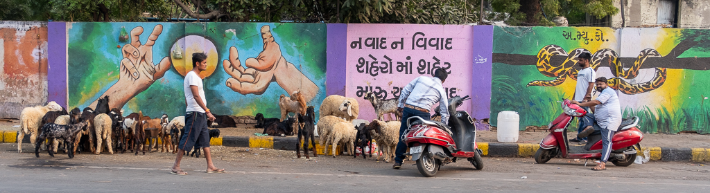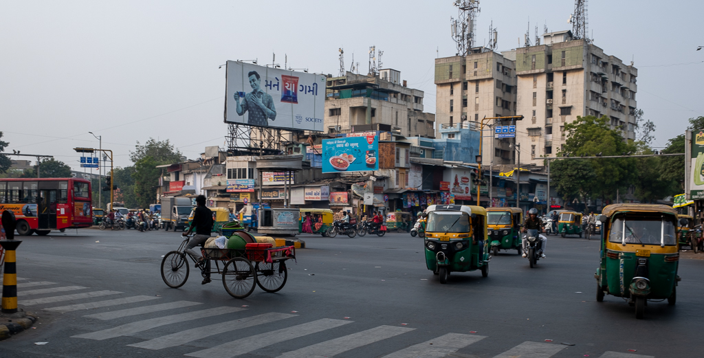 Ahmedabad, unser erster Platz in Indien. Natürlich wollen wir sofort auf den Markt gehen, was sich als interessant aber auch herausfordernd erweist. Für den allerersten Ausflug vielleicht nicht die perfekte Wahl.