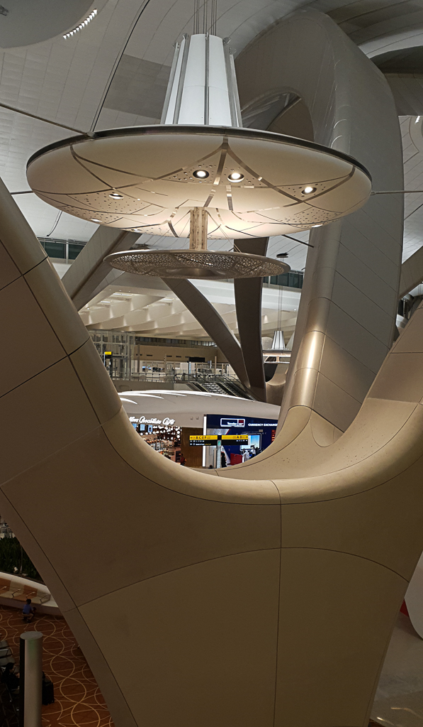 In Abu Dhabi verbringen wir 5 Stunden auf dem futuristischen Flughafen. Zu unserem Leidwesen ist die Klimaanlage auf 17 Grad eingestellt und das Licht im Liegestuhlbereich so hell, dass an Schlaf nicht zu denken ist. Dafür ist das Gebäude umso beeindruckender. Von hier aus geht es nach gut 10 Wochen zurück in die Heimat.