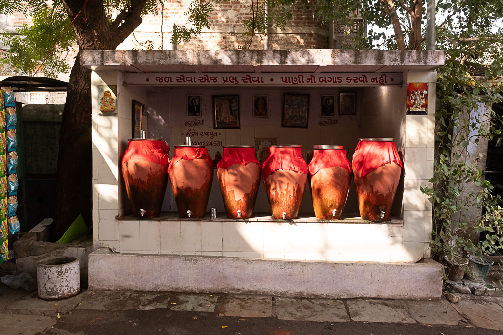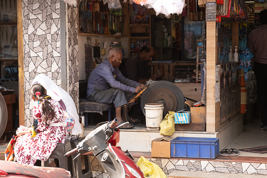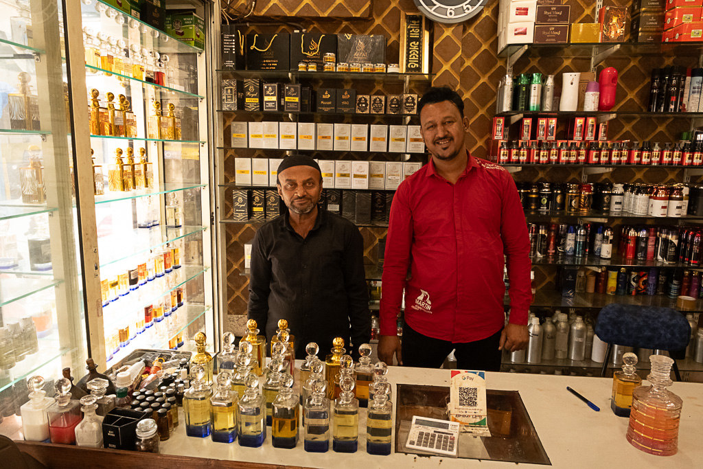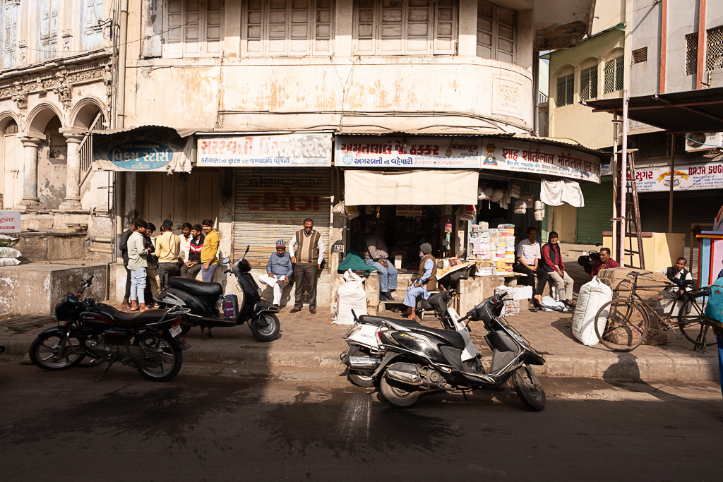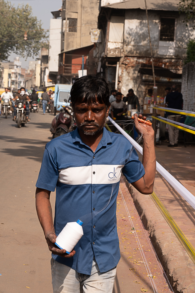 In Ahmedabad besuchen wir noch einmal den Markt, um Gewürze und Parfüm zu kaufen. Auf der Straße sehen wir, wie Leinen zum Drachensteigen gefärbt werden.