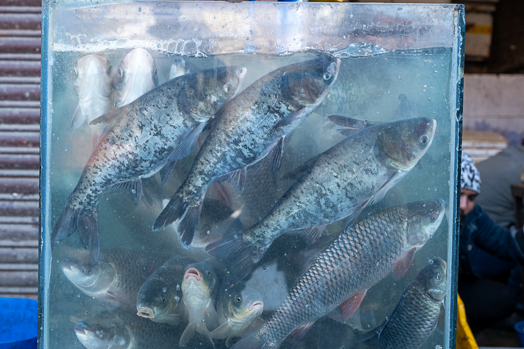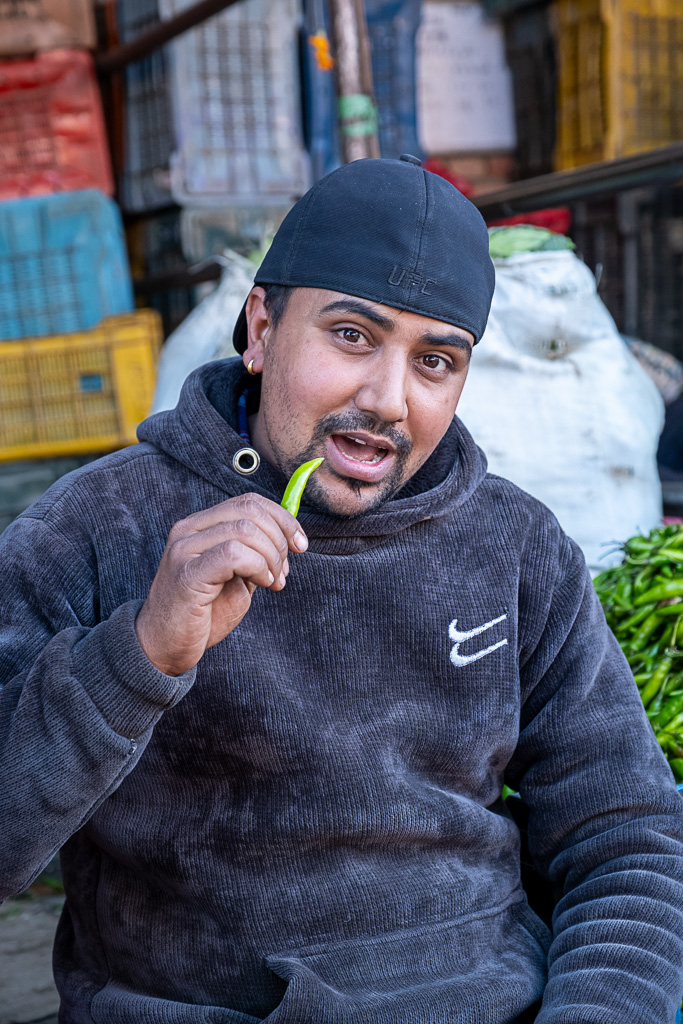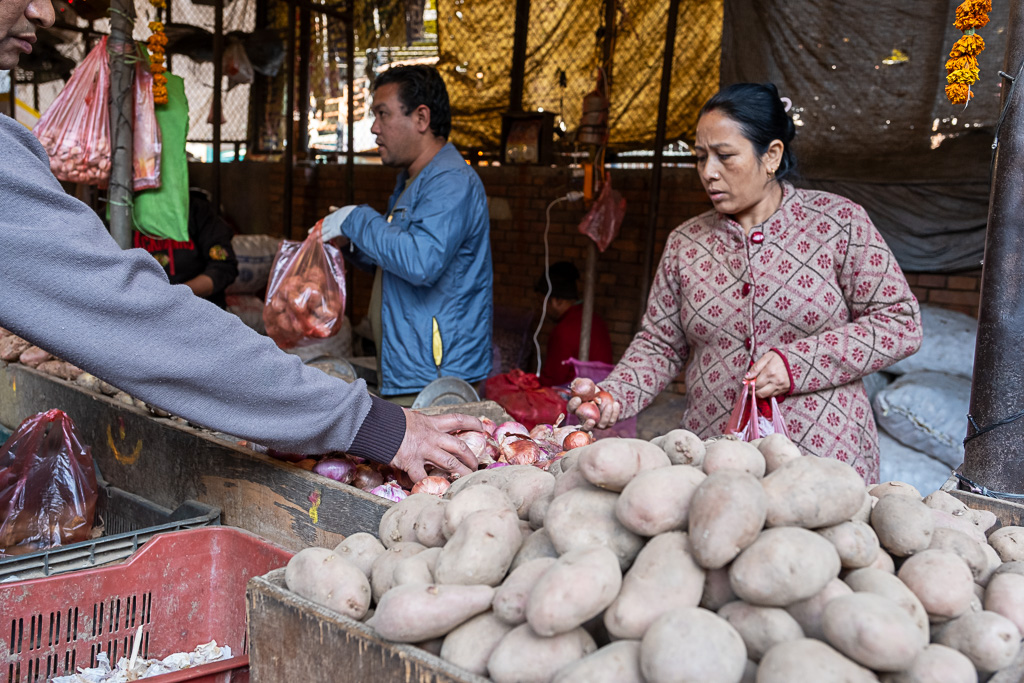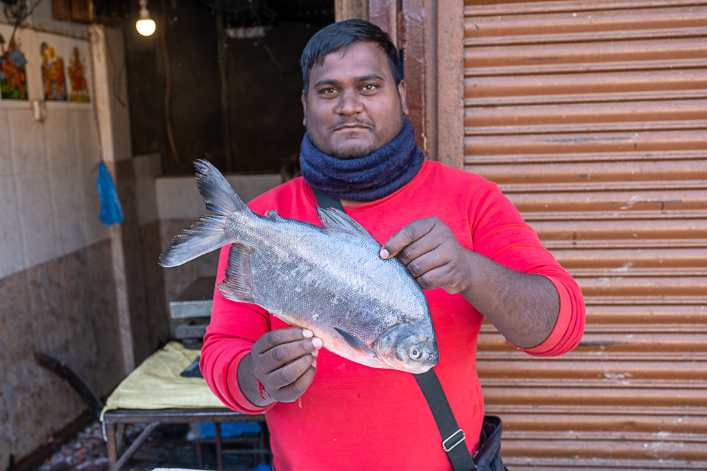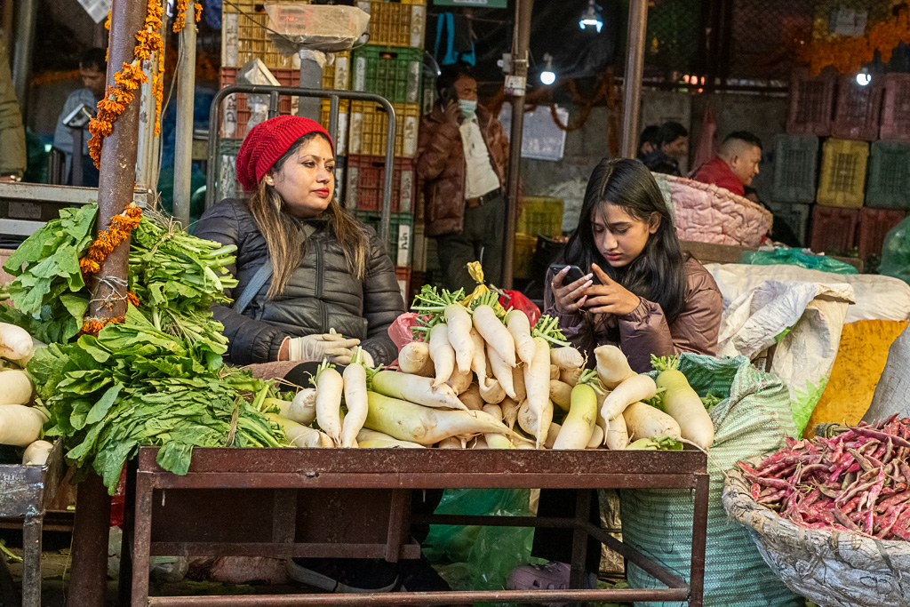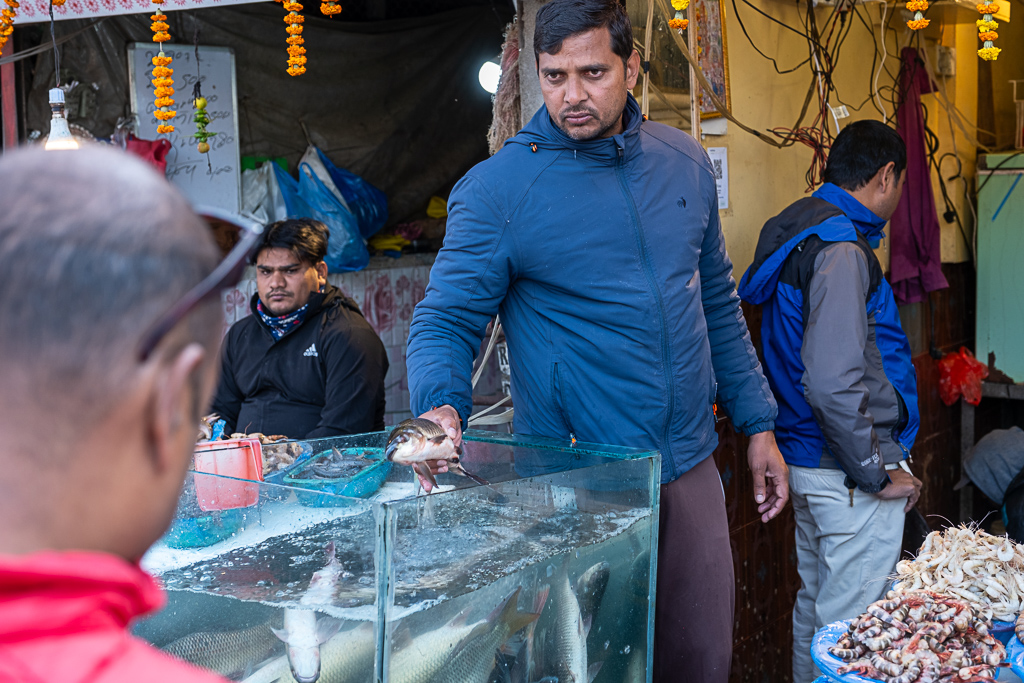 Auf dem Gemüse- und Fischmarkt in Kathmandu herrscht reges Treiben. Die Händler_innen sind freundlich und lieben es, fotografiert zu werden.