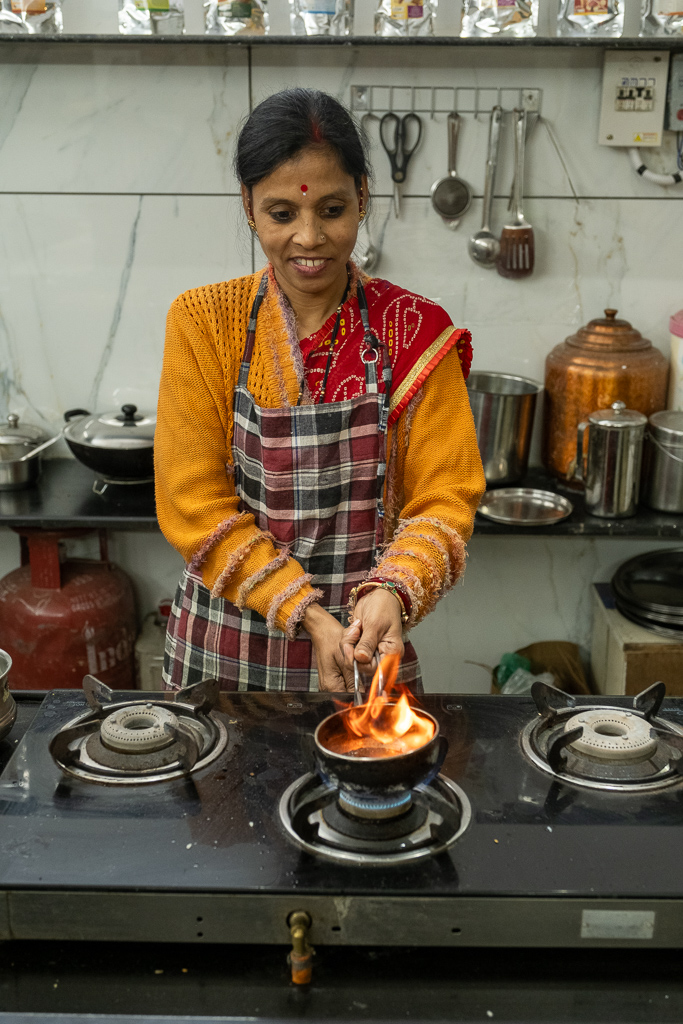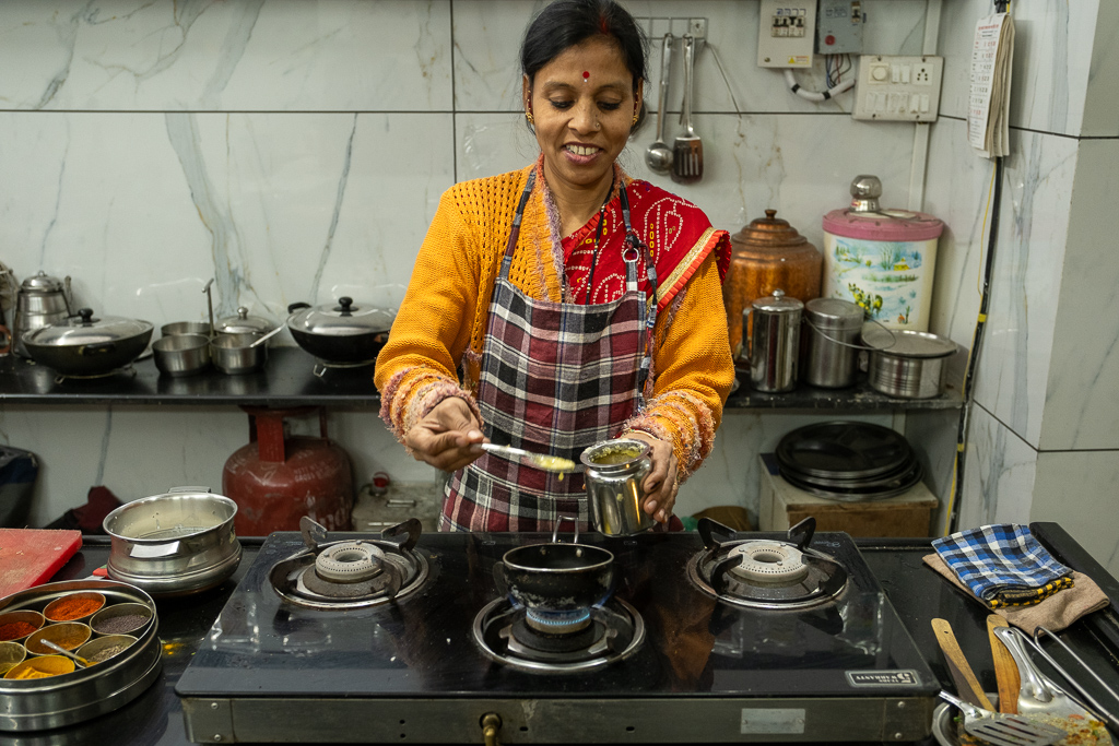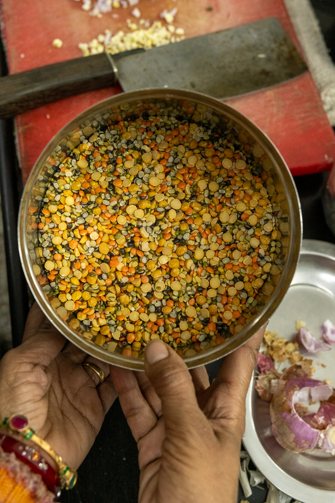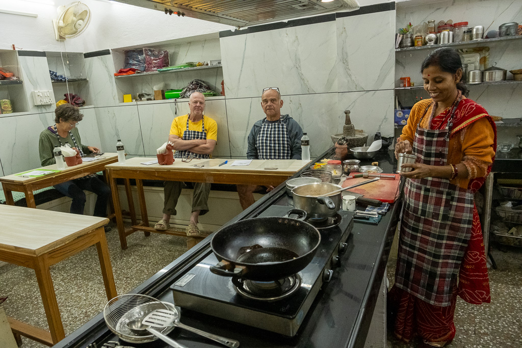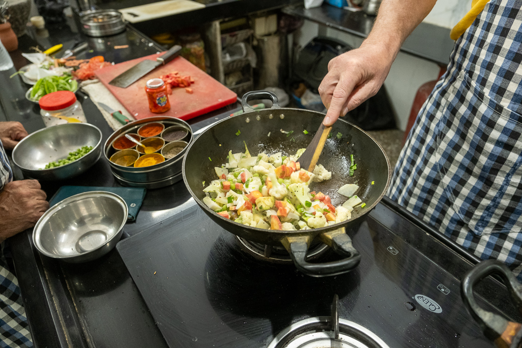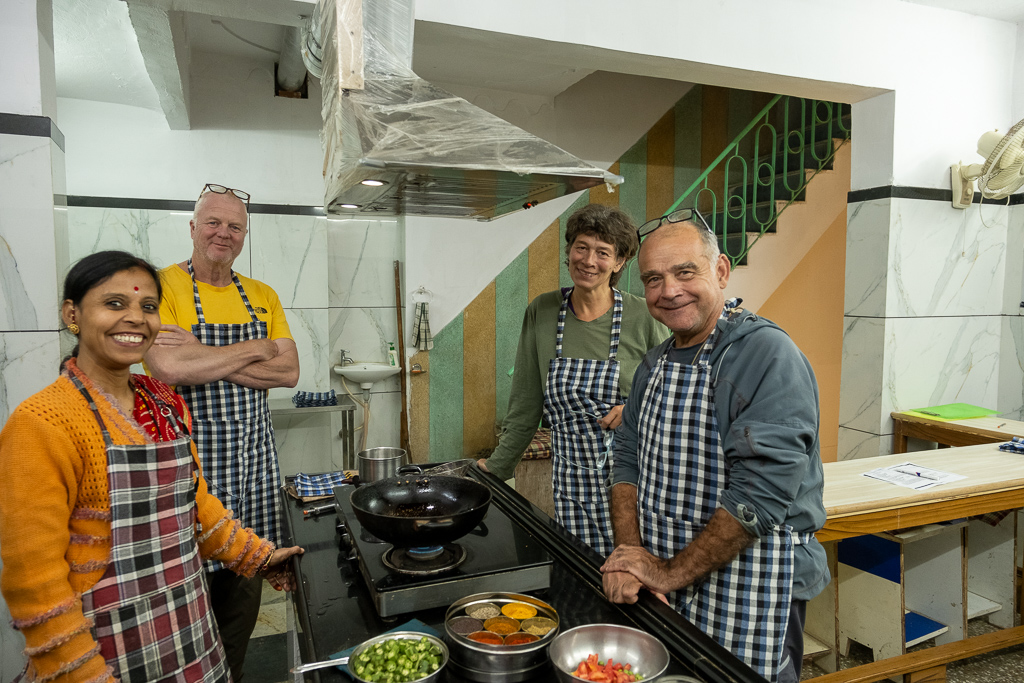 Wir besuchen einen Kochkurs und lernen wie man Dal Bat zubereitet. Es schmeckt fsat so gut wie im Restaurant.