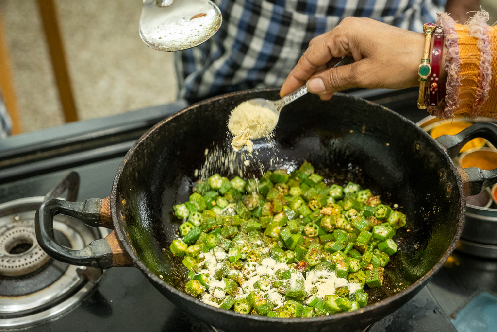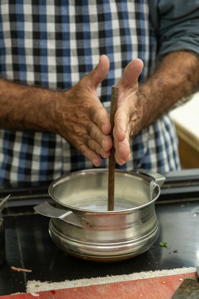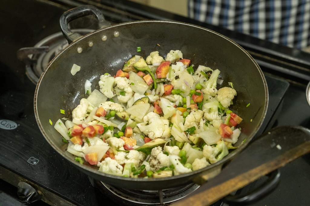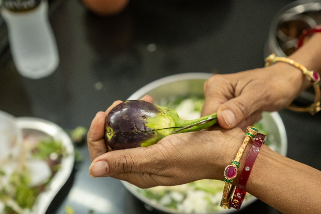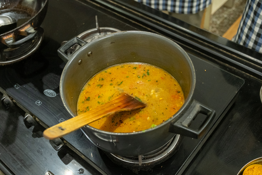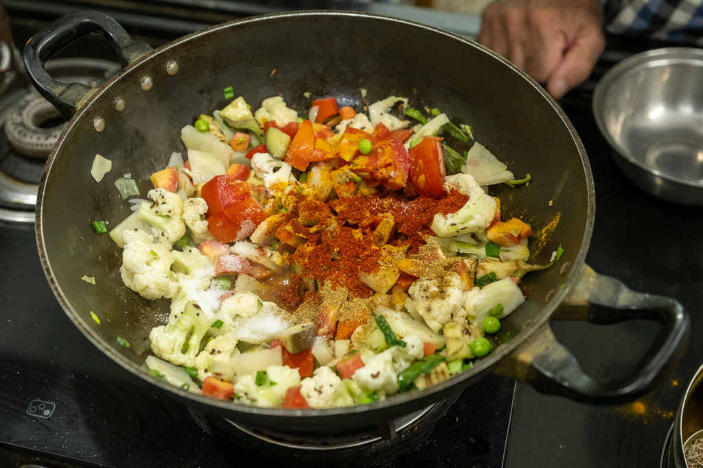 Wir besuchen einen Kochkurs und lernen wie man Dal Bat zubereitet. Es schmeckt fsat so gut wie im Restaurant.
